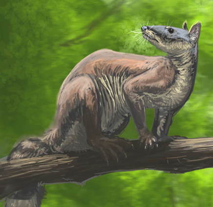 Teniamolo d'occhio, il Miacis: è un animaletto in gamba, è sopravissuto a eventi che i nostri catastrofisti climatici neanche se li immaginano, è piccolo e agile, si riproduce alla svelta, ha pochi nemici perché l'asteroide ha fatto fuori gli animali più grandi, riesce a nutrirsi con tutto ciò che trova. E' curioso, viaggia e si espande: dal Wyomig arriva in Europa e in Asia. E' uno che si adatta: se vive in spazi aperti, nelle praterie, nelle steppe, impara a cacciare con la luce, inseguendo le prede; se vive nei boschi e nelle foreste preferisce cacciare con poca luce, tendendo agguati. Così, a 25 milioni di anni dalla catastrofe, il Miacis ci appare differenziato in due linee ben distinte, Caniformi e Feliformi, l'habitat ha favorito le mutazioni che consentono a ciascuna di esse di sopravvivere al meglio. Così nascono il cane e il gatto.